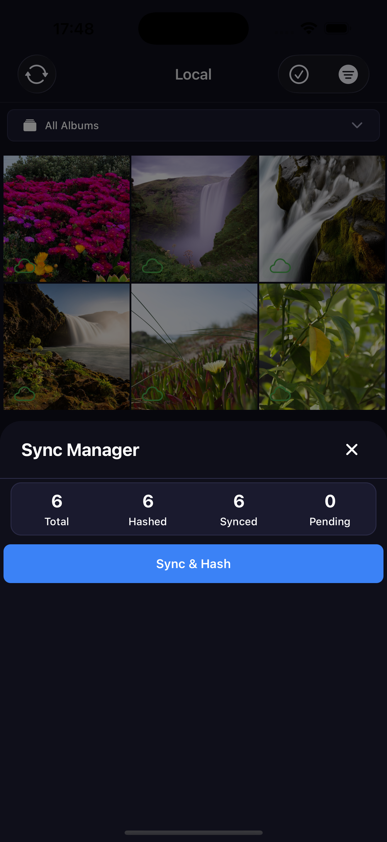 - Local First: Photos stay on your device until you sync them