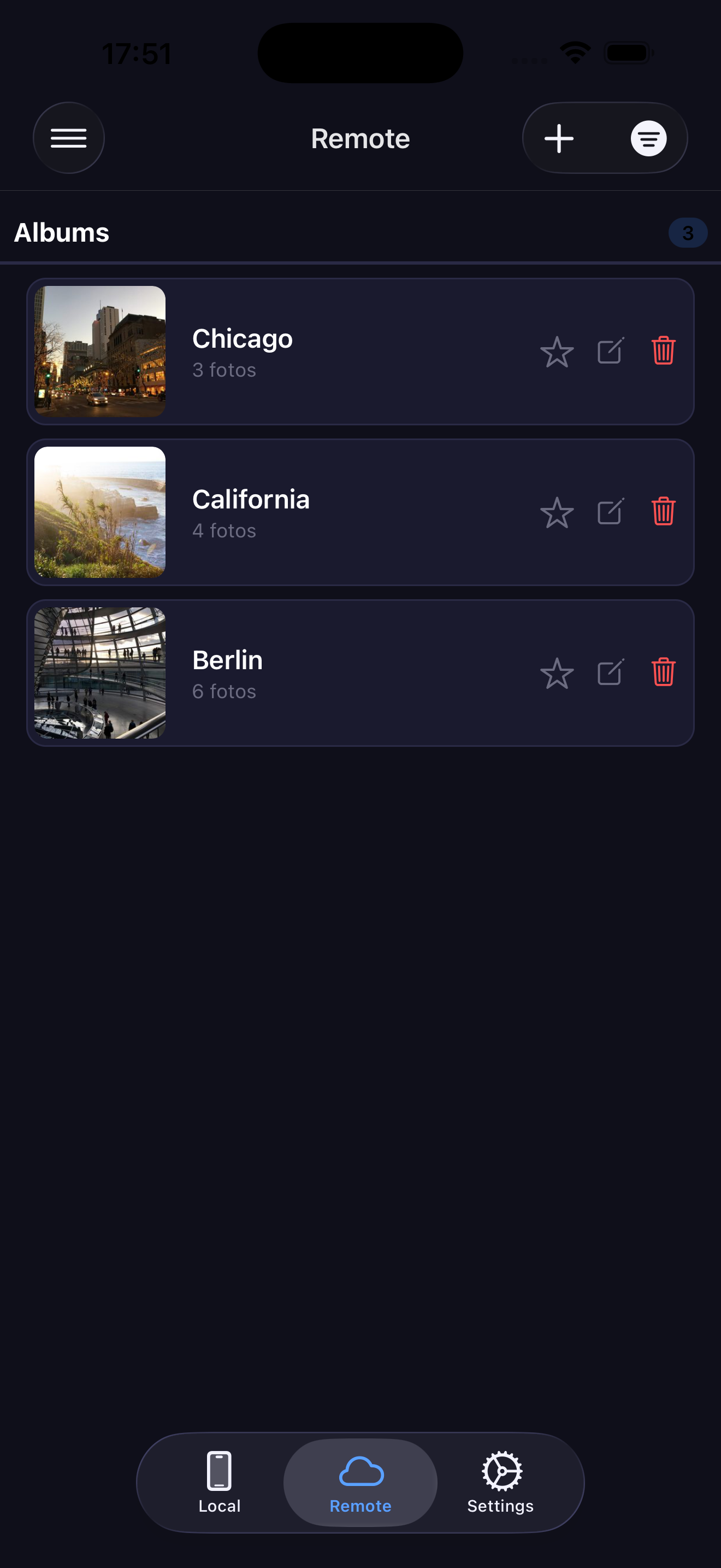 To add an album, tap the + button in the top right corner of the Albums screen.