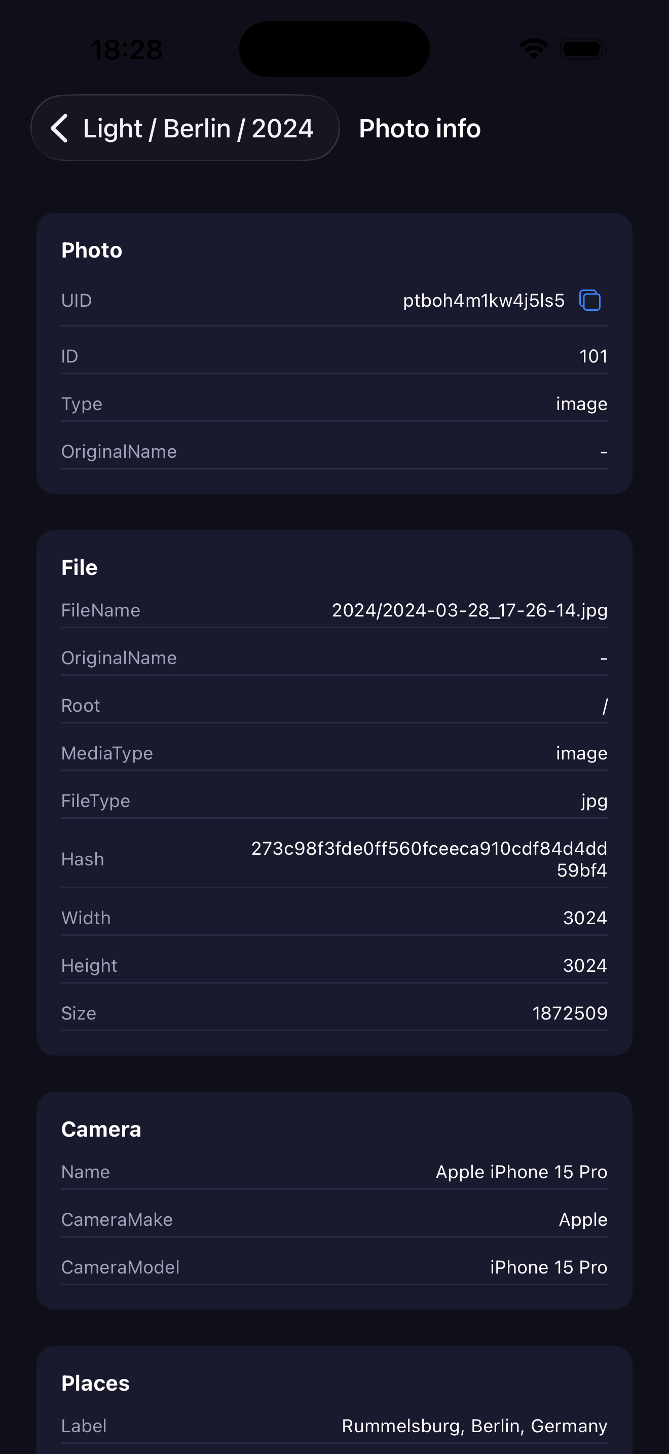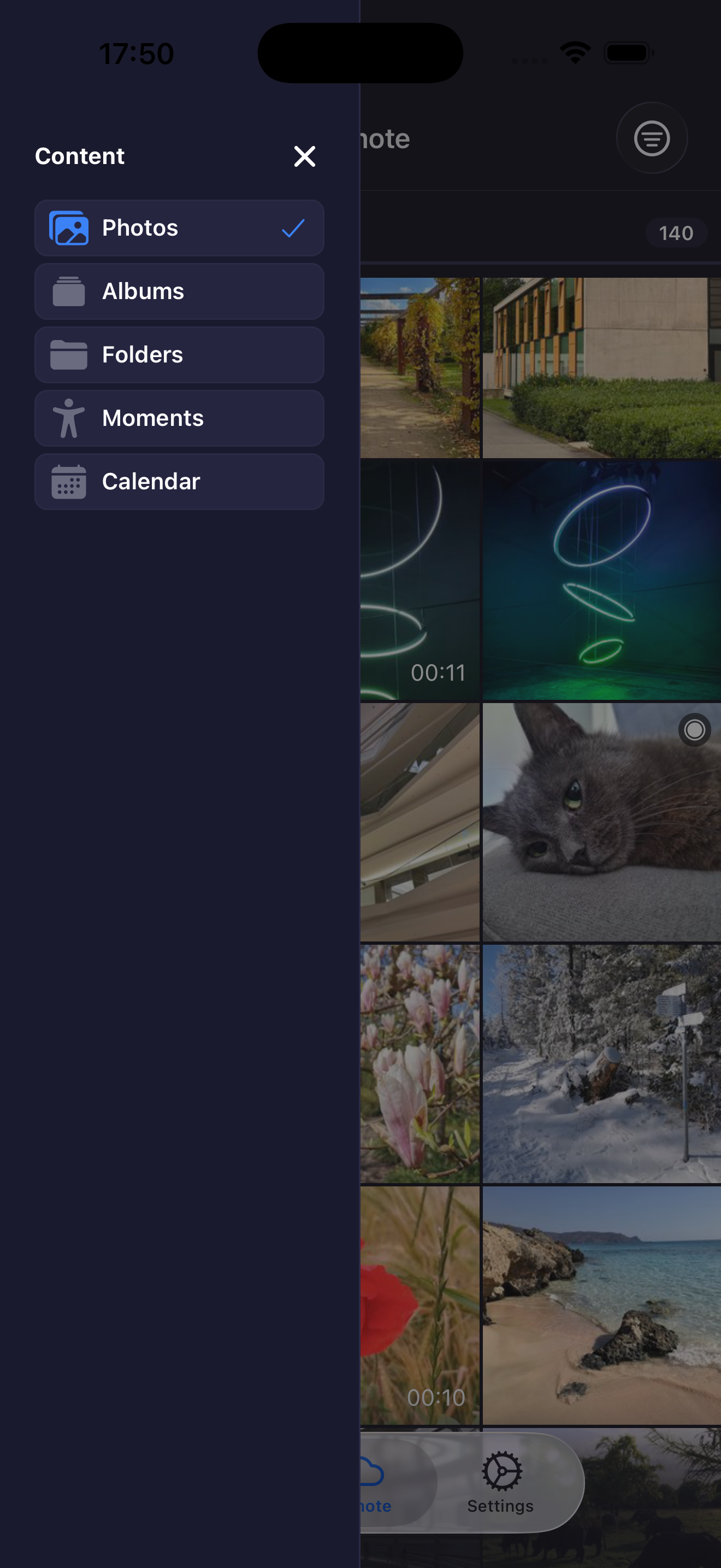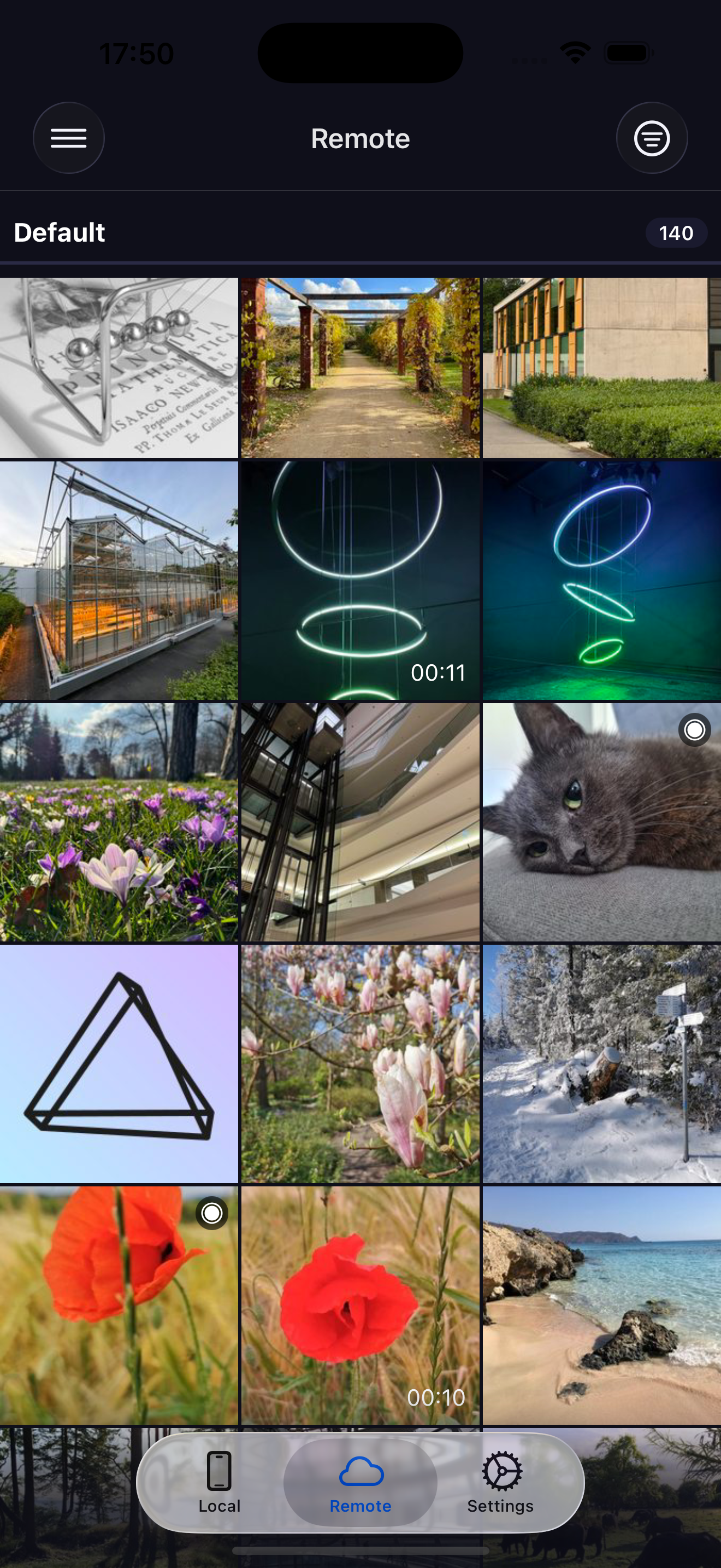 Under the Remote tab, you can view photos stored on your PhotoPrism server.